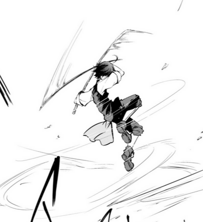 Un jeune garçon tenant deux lames fines et tournoyant dans les airs ! Ca sent la vitesse, l’énergie !