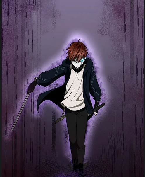 Notre jeune héro masqué surdoué laisse s’échapper une aura froide et puissante violette, prêt au combat !