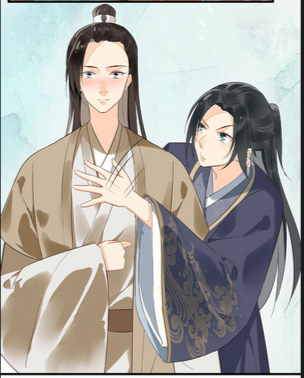 Le jeune homme vient d’être frappé d’un coup de foudre et reste à regarder l’élue fixement, ne remarquant pas son ami qui passe la main devant ses yeux pour le réveiller… Vêtements époque chine/asie ancienne.