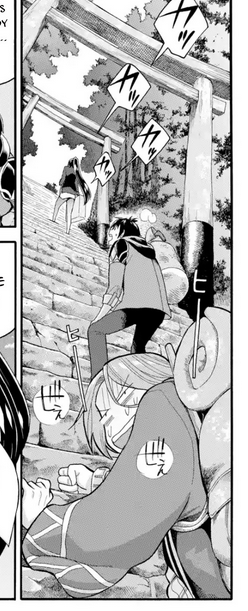 Un impressionnant escalier raide japonais plus proche de l’escalade que de la marche vu que le dernier s’appuie sur les avant-bras et s’aide des mains pour monter… La fille, plus sportive, est prem’s !