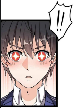 Le désir se lit sur ce visage surpris. Une bonne affaire, un beau gars ? Les joues rosées et es yeux avec les pupilles remplacer par une grande étoile ressemblant à une tête de flèche, cible désirable en vue !