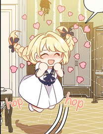 Une jeune fille fait de sauts de joie, heureusement et pleine d’énergi, entourée de dizaine de petits cœurs roses radiants d’elle !