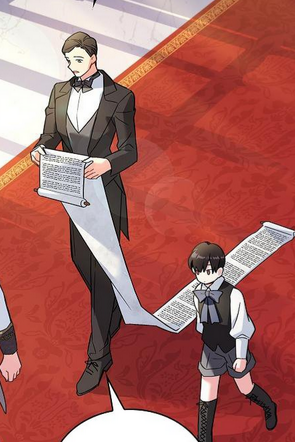 Marchant sur un tapis rouge traversant un hall, le servant déroule et lit un long rouleau de papier se terminant sur le sol.