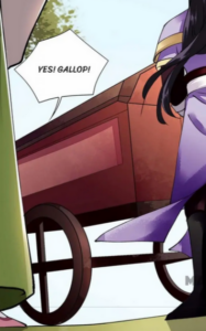 Quand les graphismes sont ratés… Cette calèche ressemble bien plus à un cercueil sur roues (pas de contact entre l’arbre de transmission ente les roues et le cercueil en lui-même d’ailleurs) qu’à un véhicule de transport pour personnes bien vivantes.