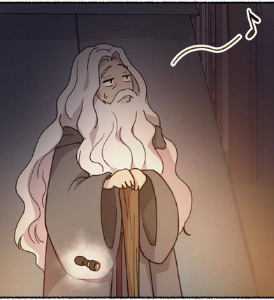 Le vieil homme sage à longue barbe blanche et cheveux blancs joue l’innocent, sifflotant l’air de rien mais avec quand même une goutte de transpiration, appuyé sur son bateau de bois, mais cachant un objet dans sa manche.